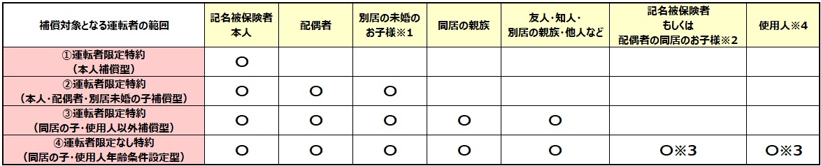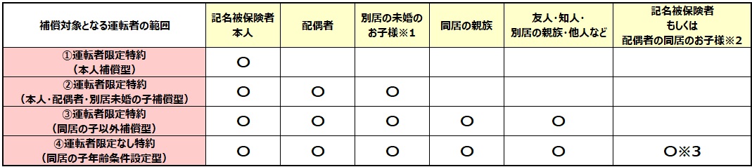 補償対象となる運転者の範囲は、ご契約内容によって異なります。